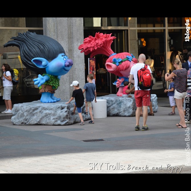 SKY: Trolls Poppy e Branch in Piazza San Babila a Milano